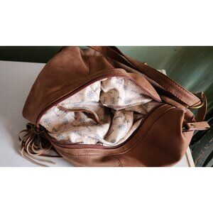 The Fiorelli Crossbody Pebbled Texture Bag/Backpack is the perfect accessory for women who are always on the go. Made from high-quality polyvinyl material, this crossbody bag is both durable and stylish. Its pebbled finish adds a touch of sophistication to its design, making it a versatile accessory that can be used for casual or formal events. This bag has a brown exterior and lining color, which gives it a classic and timeless look. It features a crossbody backpack style, making it easy to wear and carry around. It also has enough space to store your essentials, such as your phone, wallet, and makeup. Whether you're running errands or going out with friends, this bag is sure to be your go-to accessory.