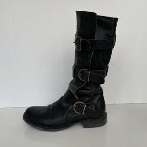 Fiorentini + Baker Leather Knee High Eternity Boots Triple Buckle Strap Black 5 : Used and in good used condition. One buckle broken.