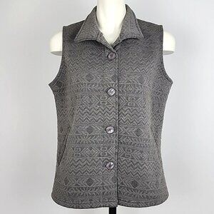 Fiori Women's Button Up Quilted Fleece Lined Grey Collared Vest Pockets Size M