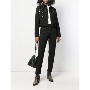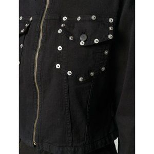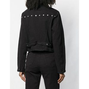 Black cotton denim jacket from Fiorucci featuring a pointed collar, long sleeves, a front zip fastening and popper detailed chest pockets.