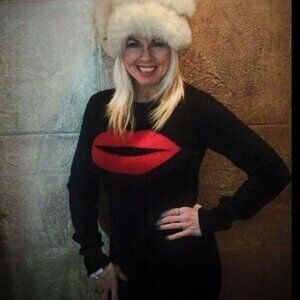 Fiorucci Red Lips Sweater Dress Wool Blend Black Small