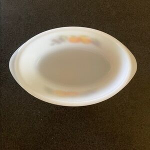 Vintage Gay Fad Studios Anchor Hocking Fire-King "Fruit" Ovenware, 1 1/2 Quart with no chips, cracks etc. Gay Fad Studios was founded by Fran Taylor in Lancaster, OH in 1945 and closed in 1962. During that time, she purchased blank glassware from such companies as Anchor Hocking and hand-painted designs on them along with artists she employed. In the mid-late 1950's until closing, one of the patterns was a fruit pattern, of which this ovenware is one. The back shows it is made by Anchor Hocking Fire-King of the USA and holds 1 1/2 quarts