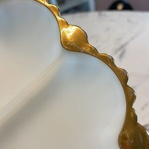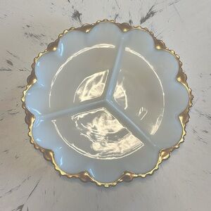 Fire King Milk Glass Divided Plate. Some faint scratches on the gold otherwise in excellent vintage condition.