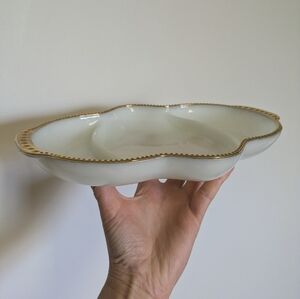 Fire King Milk Glass Divided Tray Anchor Howking Gold Trim