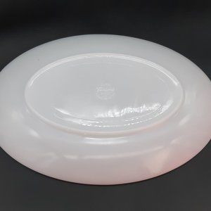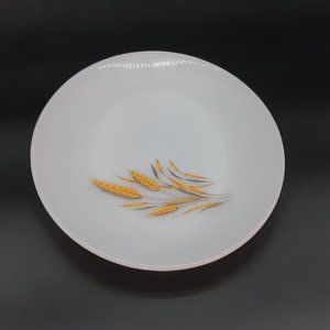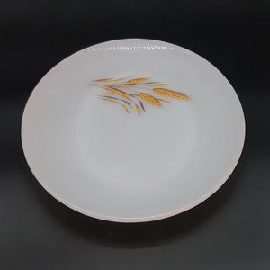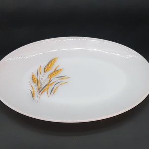 This is a Fire King serving tray made by Anchor Hocking in the US. It is decorated with wheat and is designed for use in the oven. It is 12" wide by 9" deep; there is wear as in the pictures.