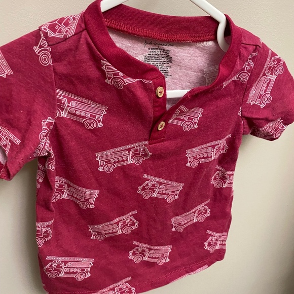 Fire truck print Henley style tshirt in great condition. Size 12 months.