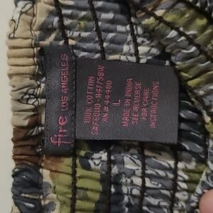 An excellent condition skirt from fire los Angeles. three tiers of fabric separated by lace detailing, with a smocked waist. 100% cotton. size tag says large but would probably also fit xl. waist flat 16.5" with stretch to 20", length is 18"