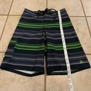 Firefly, board shorts, swim trunks, youth, boys, XL, TG, striped, neon green, black shorts, summer, beachwear, swimwear, pool, vacation, quick-dry, polyester, elastane