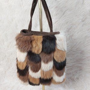 Firenze Collection Women's Brown and Tan Rabbit Fur Small Hand Bag