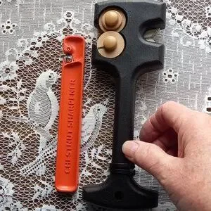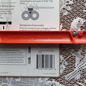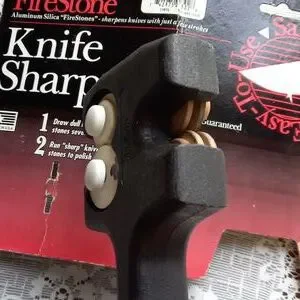 It has been used and shows it with some abrasions on the handle and the ceramic wheels.