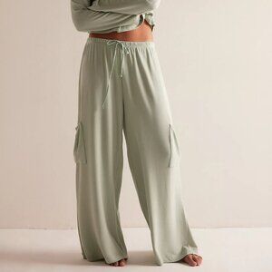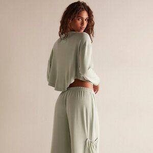 Slouchy silhouettes and super soft fabric make this lounge set from Intimately the perfect cozy addition to your sleep styles, featuring a thermal knit fabrication, a button-down top with drop shoulder sleeves, and elasticated, wide-leg pants with side patch pockets. Color is Seafoam. Size S.