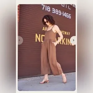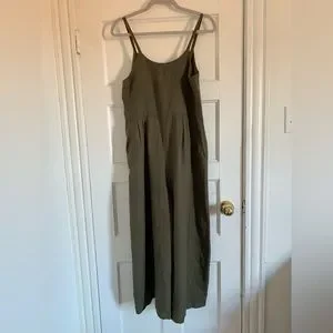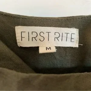 Gorgeous jumpsuit from LA sustainable brand First Rite. Linen/rayon blend. Lovely loose fit and drape. Runs TTS. Worn a couple of times. Freshly dry cleaned. Garmentory photos are of the same jumpsuit, different colour. Colour is a lovely mossy green.