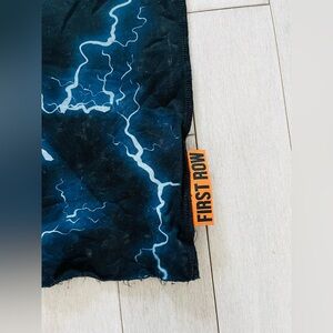 Elevate your style with the First Brand Men's Lightning Bolt Button Down Shirt. This striking shirt features a bold lightning design in black and blue, perfect for making a statement.