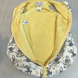 A safer alternative to blankets and sheets, zip around, sleeveless for improved ventilation, and allows for mobility of movement of arms and legs so baby can sleep comfortably and not restricted. Snap button shoulder detail. Super soft cotton sleepsack with polyester filling to keep baby cozy.