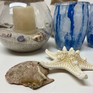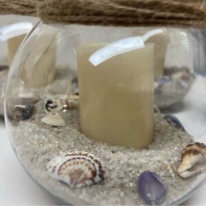 Handmade Super Cute Fishbowl Candle set of 4 + 2 Votive Sized Holders. Comes w/ Working LED Candles + Everything Shown in the Pics Including The Starfish Shell.