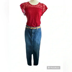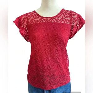 woman’s red lace short sleeve top shirt, small, business casual