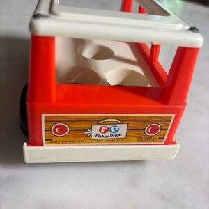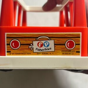 MINT condition 1969 Fisher-Price Mini-Van. This Gen X childhood classic will bring on some serious nostalgia. The Mini Van with its cheerful red body and woodgrain decals has been lightly played with, if at all. There are very light surface scratches on the plastic consistent with gentle handling, but there is no wear on the wheels, and NO wear to the lithographs. They are not torn, faded, stained or marked in any way. I have personally never seen such a new looking toy that is actually 56 years old. (Time Machine maybe?? 🤔)