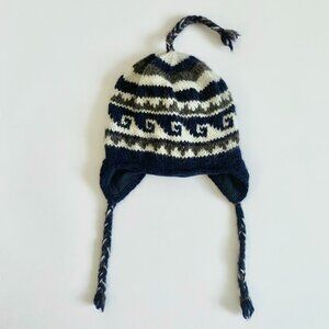 Fisherman Core Nepal Wool Ear Flap Knit Hat Toque Navy White Cottage Grandma