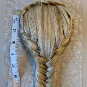 Ready to wear hair, fishtail braid in Light blonde color.