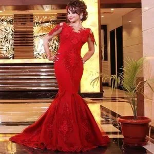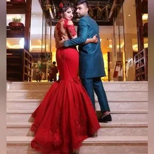 Fishtail gown in beautiful red colour. This gown entails alluring embroidery all over with a stunning back. The amazing fabric used fits like a glove.