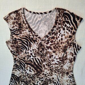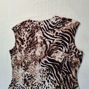Tan Jay Slimming Fit & Flare Stretchy Animal Print Princess Dress with Front Detail, Large