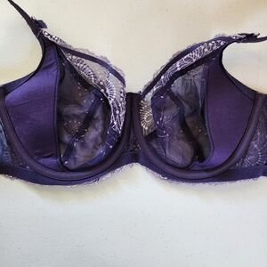 Fit Fully Yours Nicole Bra Lace Purple Unpadded Underwire Embroidered Size 30H