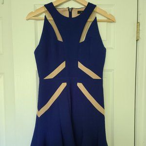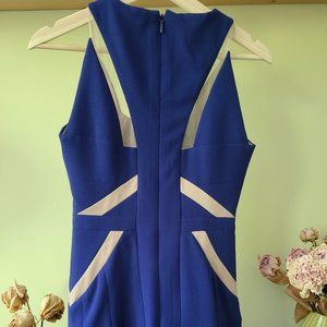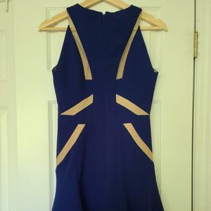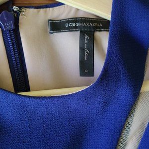 Love this beautiful blue dress from BCBG. It reminded me of Stella McCartney and Victoria Beckham designs. Structured and fitted in an eye-catching solid colour. I love the fair at the bottom that is beautiful when you walk. Note that the panels are sheer towards the shoulders, but the ones at the body are opaque (it's a tan coloured fabric). I've only had the chance to wear this once, so it's in great condition.