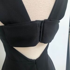 Cute, modern deep v-neck fit n flare mini dress, open back with hook/eye centre back bow.