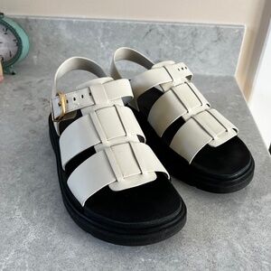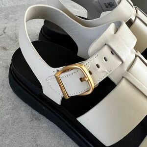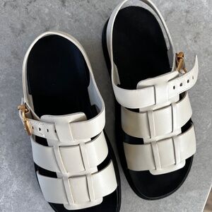 Almost new. Top quality soft leather in a warm bone color. Chunky but comfortable soles Beautiful gold buckles Size 8 - 8.5