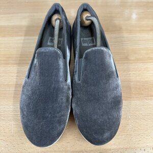 FitFlop Superskate Velvet Gray Slip on Sneaker Flat Comfort Shoes Women's 8.5