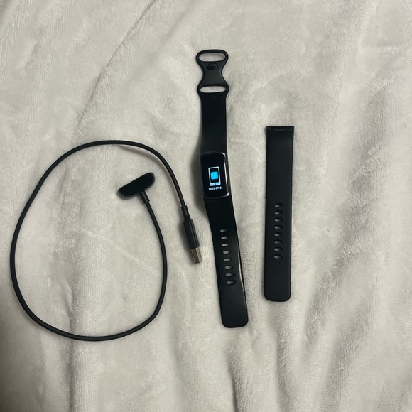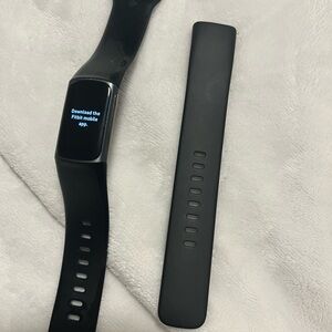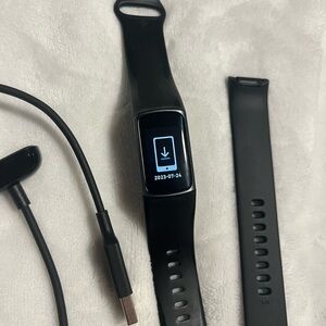 Fitbit Charge 5. Black colour. Includes charging cable and brand new spare band.