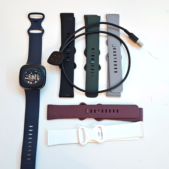used in New condition. barely worn. comes with watch, original charger and 5 additional silicone watch bands.