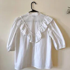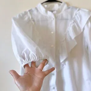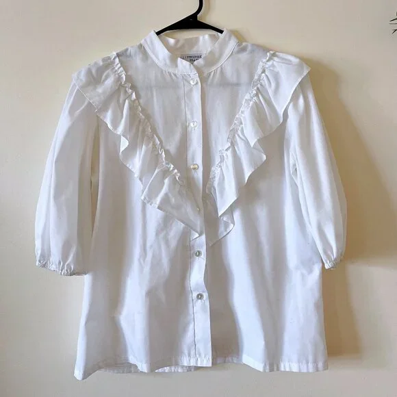 Turn heads with this romantic ruffled blouse from Fitchfork! With soft, flowing fabric and delicate ruffle details, it’s perfect for dressing up jeans or pairing with a skirt for a more elevated look.