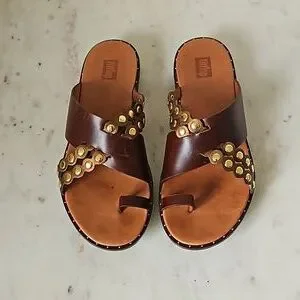 Stylish brown leather gold studded Fitflop sandals. size: 6 US condition: excellent - light signs of wear!