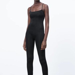 This is a full-length, body-hugging jumpsuit with a low-scoop back and straight neckline. It's made from sweat-wicking knit fabric that holds you. Perfect add to any WFH or lougewear collection