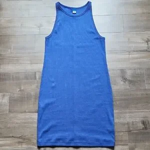 This chic blue mini dress from Old Navy features a halter neckline and a sleeveless design, perfect for a cocktail night out. Its bodycon silhouette offers a flattering fit, making it a stylish and versatile choice for any occasion.