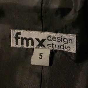 FMX black blazer . Fully lined . Rayon polyester blend . Size 5 . Nice pocket details . Very figure flattering. Smoke free home