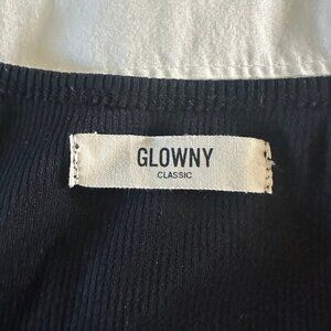 Thick ribbed black cotton long sleeve top by Glowny. Fitted scoop neck design, like-new condition. Made by Glowny, imported from Korea.