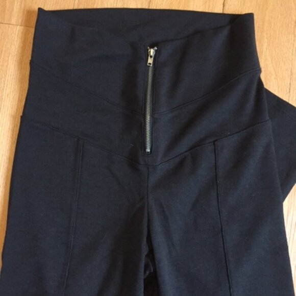 Fitted stretch pant strimmed with front zipper. Brand : Toska. Fabric: 87% polyester/13% spandex. Color : Black. Size : S.