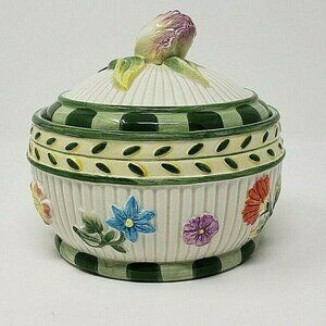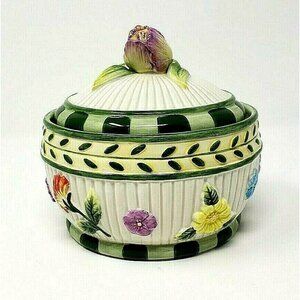 Fitz and Floyd Rosebud Covered Dish With Variety Of Raised Flowers on the Sides
