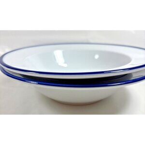 Fitz & Floyd Everyday White Bistro Soup Pasta Bowls Blue Rim Set of 2