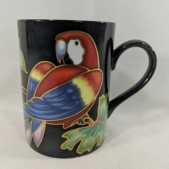 Fitz & Floyd Jungle Parrot Mug 378 Fine Porcelain Black Gold Bird Coffee