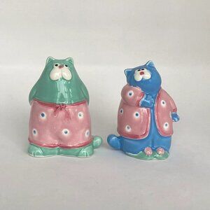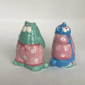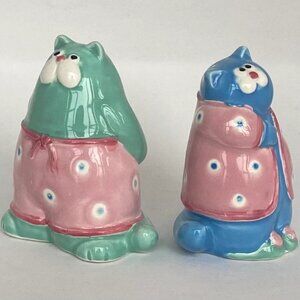 Fun vintage FF1985 cats in pyjamas salt & pepper shakers. Adorable Pair. Rare find!