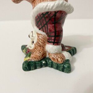 Fitz and Floyd Christmas Tumbling Bear Figurine Red Plaid Santa Suit Stars Chip