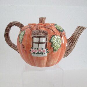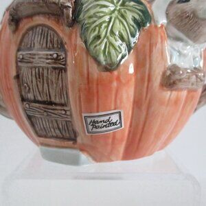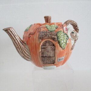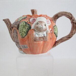 Fitz and Floyd Figural Teapot Mouse in a Pumpkin Cottage