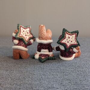 Fitz and Floyd, Tumbling Holiday/Christmas Bear Figurines with Stars, 3pc. All in excellent used condition with no damage or defects noted; as seen in the photos one of the figurines was a former showroom sample. tags: mini miniature ornament cute kitsch retro 70s 80s 90s collectable display curio xmas santa