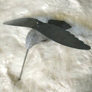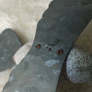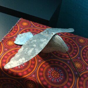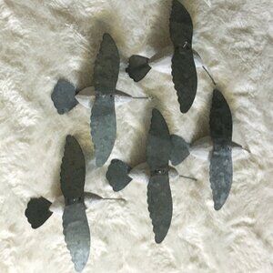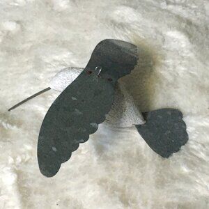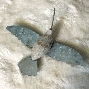 Good preowned condition hummingbirds made of wood and steel ready to hang. These are very cool pieces of art that would look perfect on a white Christmas tree, hanging in your gazebo or wherever you fancy. They have a simple, modern, but natural reclaimed look of pocked wood and have a light wash of paint. The natural steel sheets and wire beaks are a clever finish. Great idea. About 20 years old or so. As a group or $13 each.