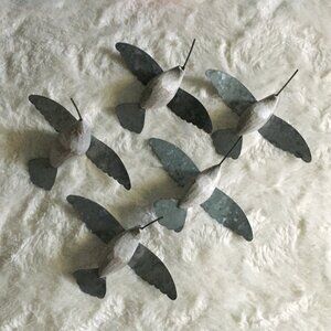 Five Handmade Steel and Wood Hummingbird Christmas Hanging Ornaments