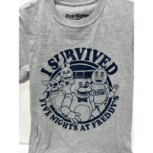 Five Nights at Freddys Graphic T-Shirt "I Survived FNAF" , Grey, Size Small, GUC