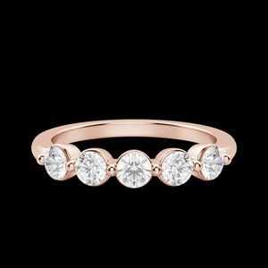 Five round cut lab grown diamonds in a shared prong setting. This classic design bares a simple and elegant look